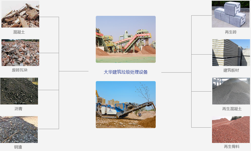 洛陽(yáng)大華重型機(jī)械有限公司的小模塊建筑垃圾生產(chǎn)線(xiàn),是經(jīng)過(guò)破碎、分選、篩分流程后,最后將其消化為不同粒徑的砂石再生骨料,這種生產(chǎn)線(xiàn)每小時(shí)可吃掉建筑垃圾80多噸,消化后的建筑垃圾可用于各類(lèi)混凝土砌塊、地面磚,從而實(shí)現(xiàn)循環(huán)利用。