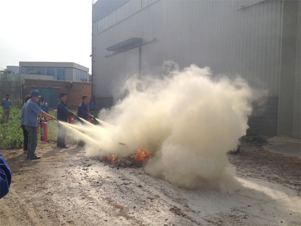 參加演習人員有各部門、各車間新入職員工和各車間班組長及安全員,機加車間主任張自力,金構(gòu)車間主任鄧興軍、曹永祿,液電車間主任王海濤、張孟喜,制造部長張彥寶等領(lǐng)導(dǎo)都帶頭參加滅火演習。在滅火演練前,公司安全員吳建國首先把怎樣使用滅火器材和滅火注意事項進行講解:一是在日常消防工作中一定要把預(yù)防火災(zāi)放在首位,積極貫徹落實各項防火措施,防患與未然,最大限度減少火災(zāi);二是一旦發(fā)生火災(zāi)要及時有效予以撲滅創(chuàng)造條件,減少火災(zāi)危害和最大限度減少火災(zāi)所造成的人身傷亡和財產(chǎn)損失;三是正確使用滅火器材,撲滅火災(zāi)時,把滅火器上下顛倒幾次,離火點3-4米時,拔出保險銷,一手握噴嘴,一手將壓把壓下,干粉向火的根部噴出,滅火要徹底迅速,不要遺留殘火,以防復(fù)燃。