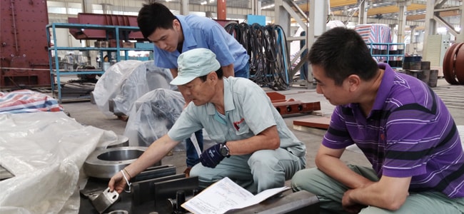 2015年8月27日-29日,按照預(yù)定的驗收計劃安排,日本阿爾斯泰克公司大昭先生、鄭曉明先生到公司對顎破、立磨零備件的制作情況進行驗收,在公司技術(shù)中心副主任粟大慶的陪同下,日方對我公司待檢產(chǎn)品逐一檢查、確認、標識,并交代過程中應(yīng)注意事項,經(jīng)過緊張有序的現(xiàn)場檢驗,最終產(chǎn)品通過了日方嚴格的檢驗標準,驗收工作圓滿結(jié)束。雖然這是一次例行檢查工作,但日方質(zhì)檢人員認真嚴謹,一絲不茍的工作作風贏得大家的贊許,也是我們學(xué)習(xí)和提高的機會。