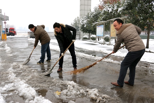 同事們不畏嚴(yán)寒,積極主動、相互配合、齊心協(xié)力,冒著凜冽的寒風(fēng),清掃著冰雪的路面,許多人的手和臉都被凍得通紅,鞋子也被浸透,然而,這一切絲毫沒有影響大家的勞動熱情,他們團結(jié)協(xié)作,掃的掃、鏟的鏟井然有序的干的熱火朝天,經(jīng)過一個多小時的奮戰(zhàn),公司辦公樓、車子棚及各車間通道都被打通,確保員工出行和樹木安全。
