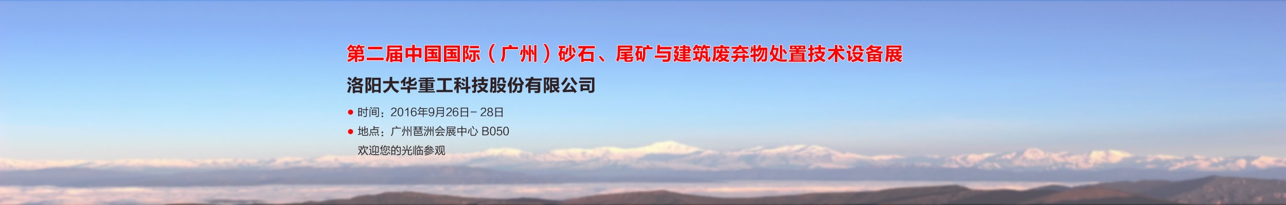 當(dāng)前位置:首頁(yè)>媒體中心>公司動(dòng)態(tài)>洛陽(yáng)大華將參加第二屆中國(guó)國(guó)際(廣州)砂石、尾礦與建筑廢棄物處置技術(shù)設(shè)備展