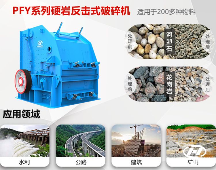反擊破是二級破碎設備,用于中碎環(huán)節(jié),具有破碎比大、生產(chǎn)效率高的特點,適合破碎中硬度及以下的韌性小、較脆的物料,如石灰石、石灰?guī)r等。雖然反擊破可以處理硬度較大的物料,如花崗巖、玄武巖等,但是對于反擊破會消耗更多的磨損。不過,我公司研發(fā)了一款可以破碎硬度較高石頭的反擊破,PFY系列高效液壓反擊式破碎機。