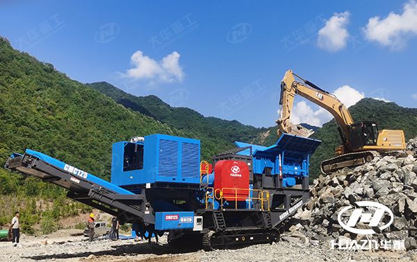 南陽時產450噸橄欖石破碎生產線現(xiàn)場,大型履帶式移動破碎站目前正在生產現(xiàn)場高效平穩(wěn)運行中