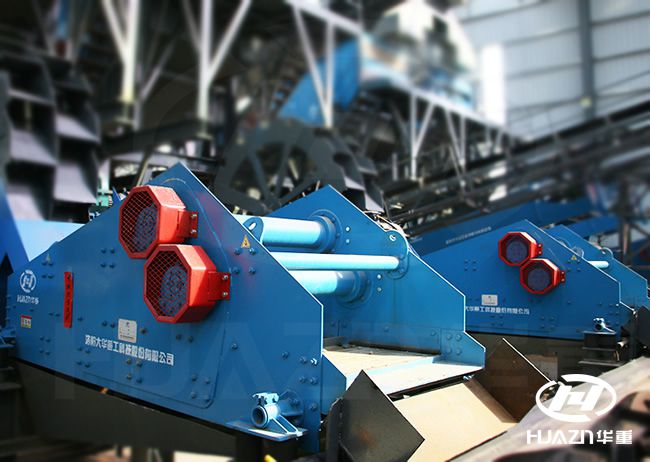 振幅的調整:調整前應先判斷振動篩在工作狀態(tài)下,振幅能不能滿足篩分作業(yè)要求,如果不能,可以對振幅調整。調整時先關閉電源,卸下激振器上的護罩,再旋轉激振器軸上平衡塊來改變激振器產生的激振力,將平衡塊放在激振器部的相同百分比的位置,然后鎖緊偏心塊,振幅大小的調整完成。另外也可以通過直接調整平衡塊的重量或軸兩端的偏心塊夾角來改變振幅大小。
