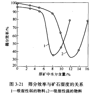附著在物料顆粒表面的外在水分,對物料的篩分有一定的影響;而處在物料孔隙和裂縫中的水分以及物料的化合水分,對篩分過程則沒有影響。