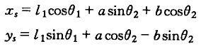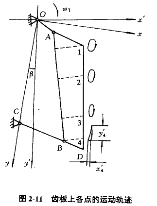 復(fù)擺領(lǐng)式破碎機(jī)運(yùn)動(dòng)分析機(jī)構(gòu)模型如圖2-8所示入點(diǎn)是齒板上的任意點(diǎn),在直角坐標(biāo)系xOy中,s點(diǎn)的位移方程為
