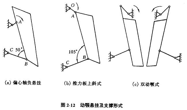 ①將傳統(tǒng)復(fù)擺顎式破碎機(jī)偏心油裝置正懸掛改為負(fù)懸掛,如圖2-12a所示,破碎機(jī)特性值m得到改善,齒板壽命可延長(zhǎng)50%,節(jié)能10.5%,產(chǎn)量提高20%,機(jī)重可減輕20%。