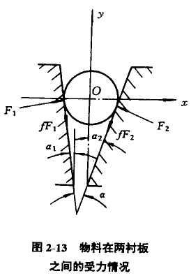 由式(2-28)得出:破碎機(jī)嚙角不應(yīng)大于2倍摩擦角。否則,破碎機(jī)就不能有效地破碎物料,因而降低了破碎機(jī)的生產(chǎn)率和效率。