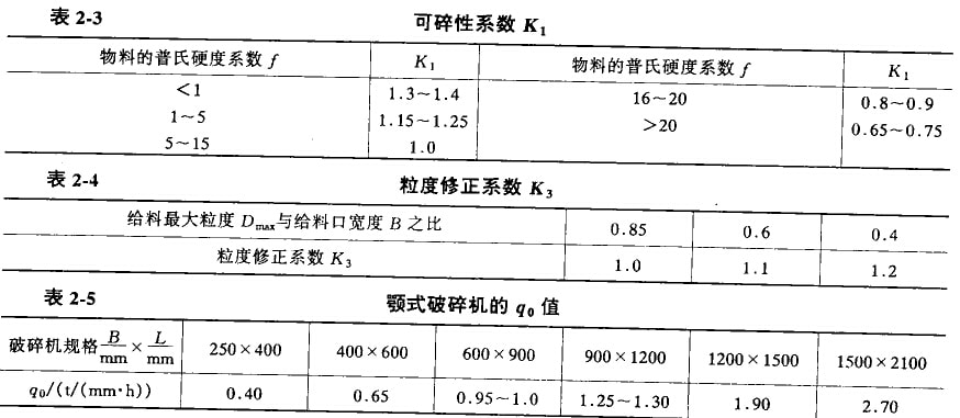 式中 K1——物料可碎性系數(shù),查表2-3;