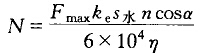Fe在位移S水方向上所作的功為FeS水cosα、一個(gè)運(yùn)動(dòng)循環(huán)的時(shí)間,考慮破碎機(jī)傳動(dòng)效率和物料與襯板間摩擦損耗的破碎效率,可得顎式破碎機(jī)功率計(jì)算公式為