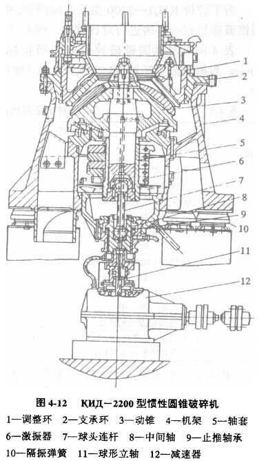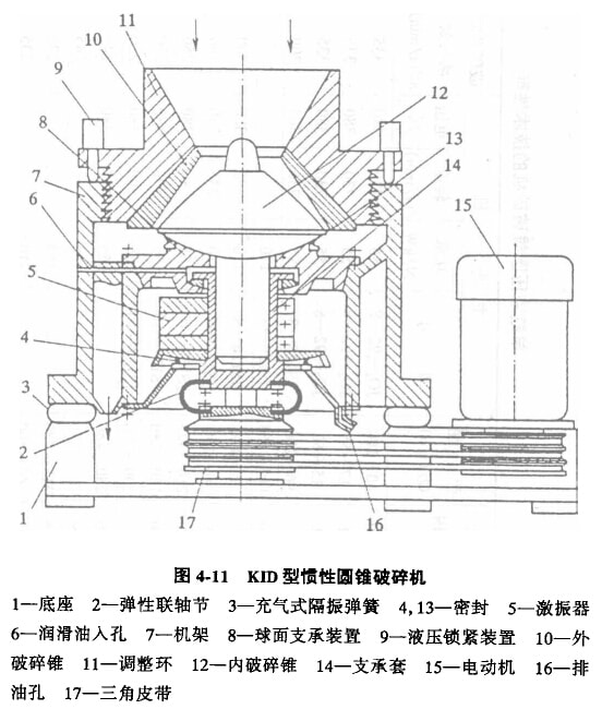 (1)KID型慣性圓錐破碎機的構(gòu)造及工作原理