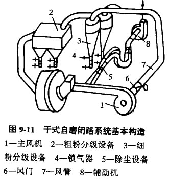 濕式自磨機和一般的球磨機、棒磨機一樣與濕式分級設備,如螺旋分級機,振動篩.旋流器等組成閉路循環(huán)系統(tǒng):而干式白磨機則與旋轉(zhuǎn)筒式磨煤機相似,其粉磨產(chǎn)品是利用風力運送出來,然后分級回收,所以它有一套風力運送和分級系統(tǒng),這套風力運送分級系統(tǒng)采用負壓工作,因而管路系統(tǒng)的密封比較容易。