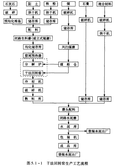 干法回轉(zhuǎn)窯生產(chǎn)的工藝流程如圖5.1-1所示。
