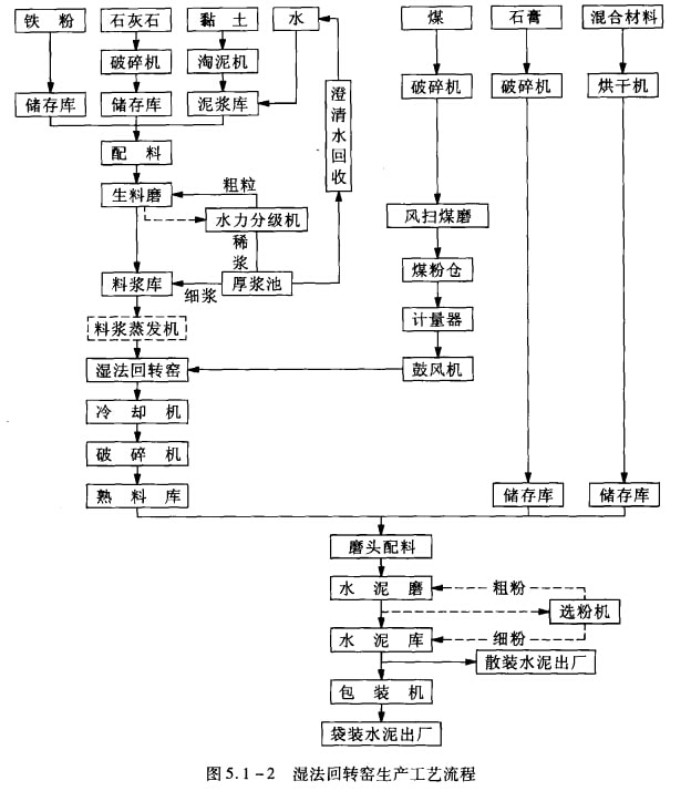濕法回轉(zhuǎn)窯生產(chǎn)的工藝流程如圖5.1-2所示。