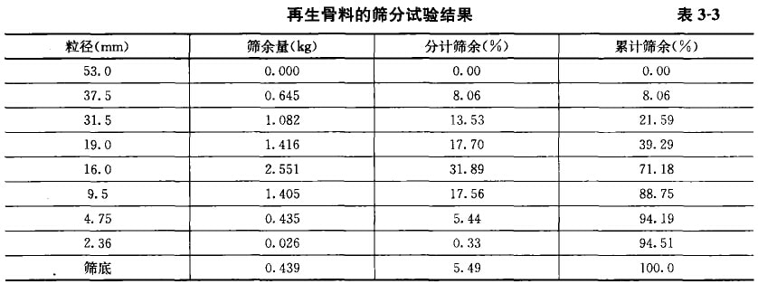再生粗骨料的篩分試驗結(jié)果如表3-3所示,從表中可以看出: