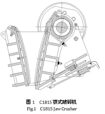 顎式破碎機一般用于粗碎各種礦石或巖石,特別是大型的礦山,首先就會選擇大型顎式破碎機。由于顎式破碎機具有結(jié)構(gòu)簡單,工 作可靠,制造容易,維修方便等優(yōu)點[1],得到廣泛的應(yīng)用。在國內(nèi)開發(fā)制造大型顎式破碎機的廠家也寥寥無幾,在行業(yè)內(nèi)公認(rèn)是比 較難做的,所以很多廠家想做但又不敢涉足。2010年我公司開發(fā)C1815大型顎式破碎機,也是當(dāng)時國內(nèi)最大的顎式破碎機。經(jīng)過研發(fā)制 造、應(yīng)用驗證,實現(xiàn)了節(jié)能降耗的目的,顯著降低了用戶使用成本,同時,也為下一步開發(fā)更大型號顎式破碎機奠定了基礎(chǔ)。