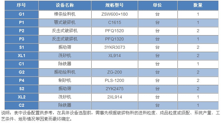 800t/h---石灰石(白云巖)類(lèi)巖石的砂石骨料生產(chǎn)工藝設(shè)備配置表