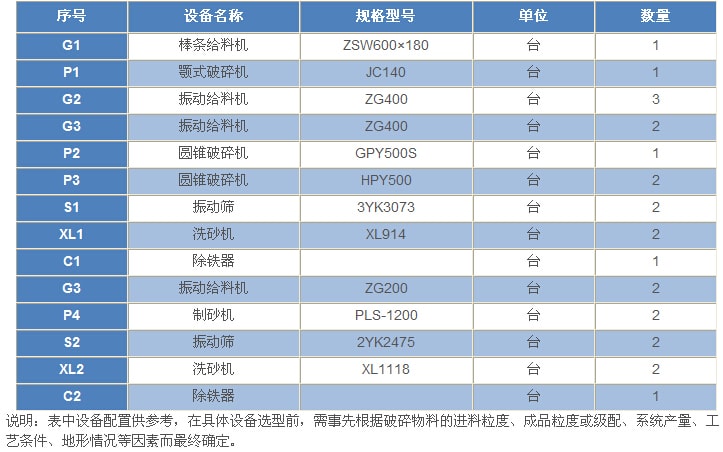 800t/h---花崗巖(玄武巖)類巖石的砂石骨料生產(chǎn)工藝設(shè)備配置表