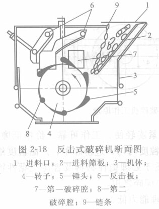 反擊式破碎機(jī)是一種高效的新型破碎設(shè)備。下圖為反擊式破碎機(jī)的斷面圖。
