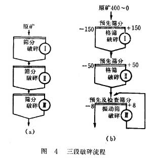 三段破碎流程是最常用的?梢苑譃閮煞N類型: