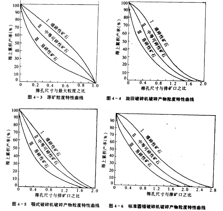 所謂最大粒度,是指95%的礦量通過某一篩孔尺寸的粒度。從表4—2看出.原礦最大粒度范圍為200一1400mm。