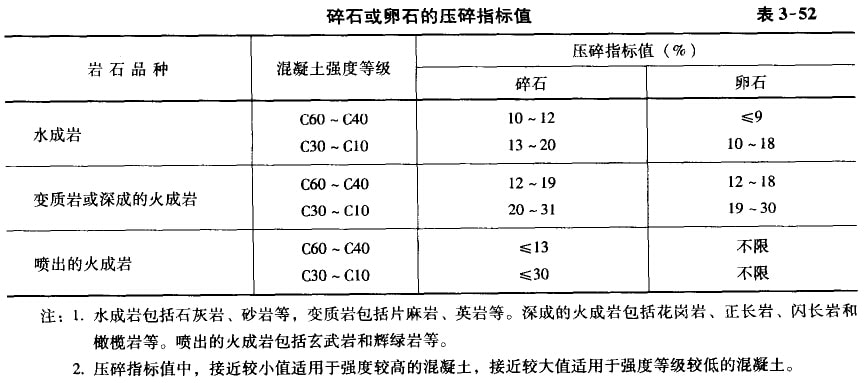 碎石或卵合的壓碎指標值可參照表3—52的規(guī)定采用。