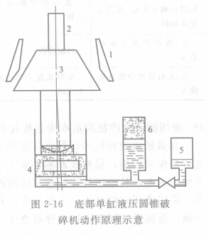底部單缸液壓圓錐破碎機動作原理如圖2-16所示。